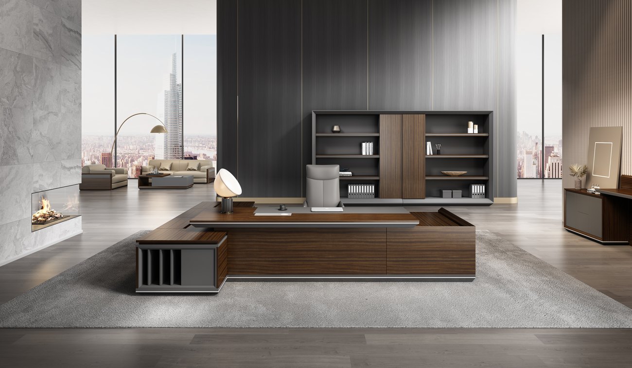 印象米兰系列定位为企业高层客户, 以深色大尺寸油漆产品为主, 班台从 2 米 -3.88 米共 10 多个规格 4 款产品供客户选择, 配套产品也相对比较全,  这个系列设计元素奉行的是一种哲学思想, 价值观以及生活方式 " 利用简单的东西做出不一样的效果, 在品位和思想上显得更加的小资和优雅, 极简主义的前身其实是极少主义, 也就是用极少的东西让设计的物品显得更加的整洁, 奉行去除华丽的矫饰, 摒弃繁琐的设计, 烘托主题, 新富豪推出的印象米兰系列正是以宁静而返璞的归属感 在这个极简现代的空间里体现。