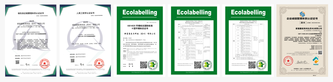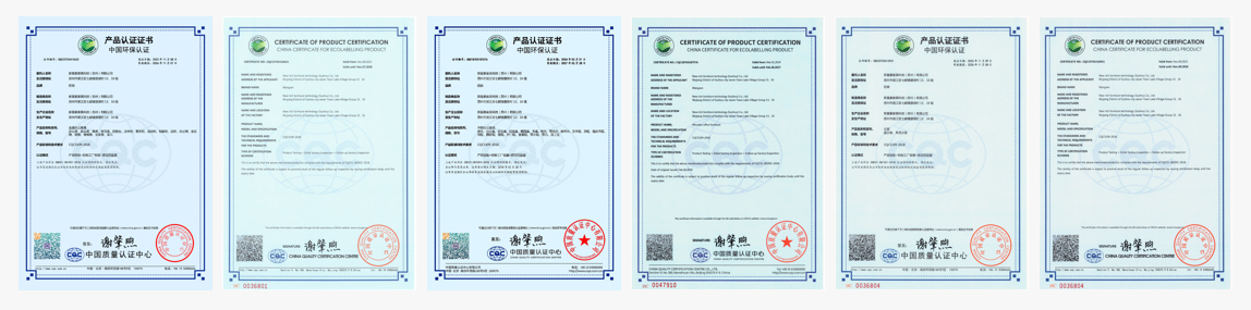 具有中国环境标志产品认证(十环),认证范围:钢木家具、金属家具、人造板类家具、软体家具、实木类家具、综合类家具等