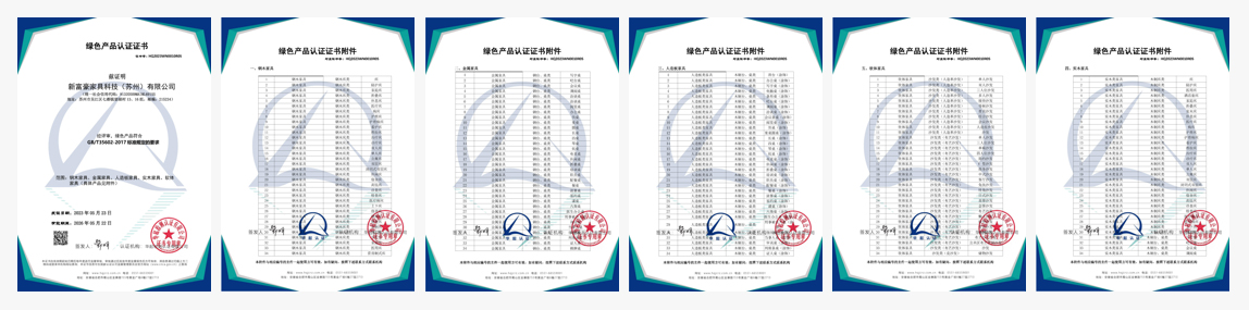 具有家具产品环保卫士认证、家具中有害物质限量认证、低VOCs家具产品认证等